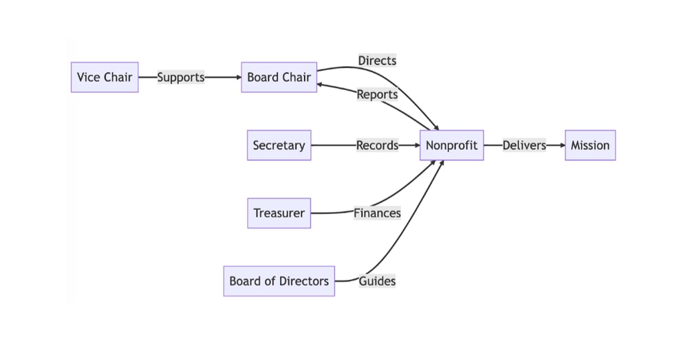 However, the common framework includes a board chair, vice chair, treasurer, and secretary.
